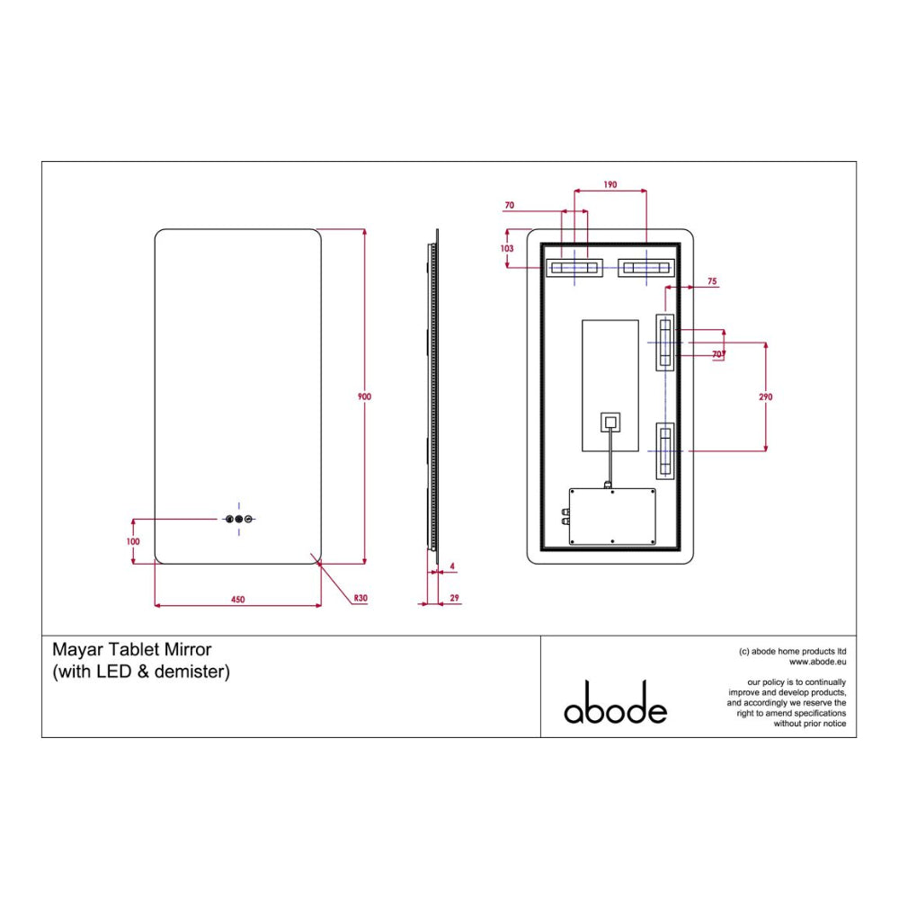 - Dimensions: H 900 x W 450 x D 29mm