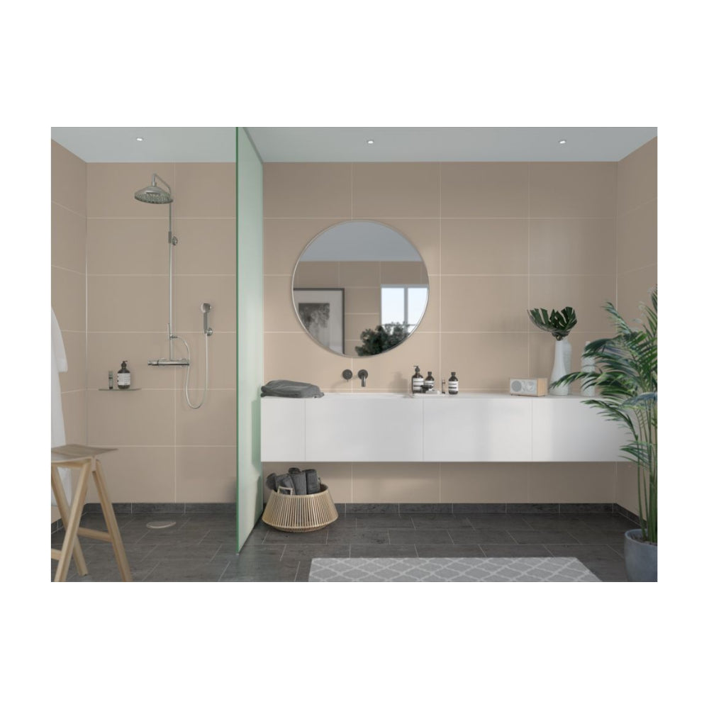 - A light and warm base colour which is perfect with light natural accessories and works great in most colour combinations. Available in a large 60 x 40 cm tile design for virtually invisible panel join lines.