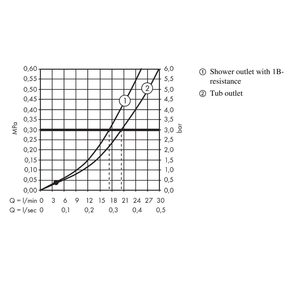 - flow rate for bath spout at 3 bar: 20 l/min