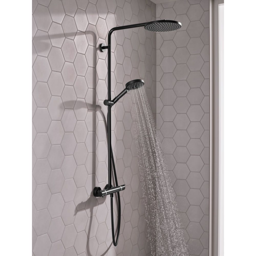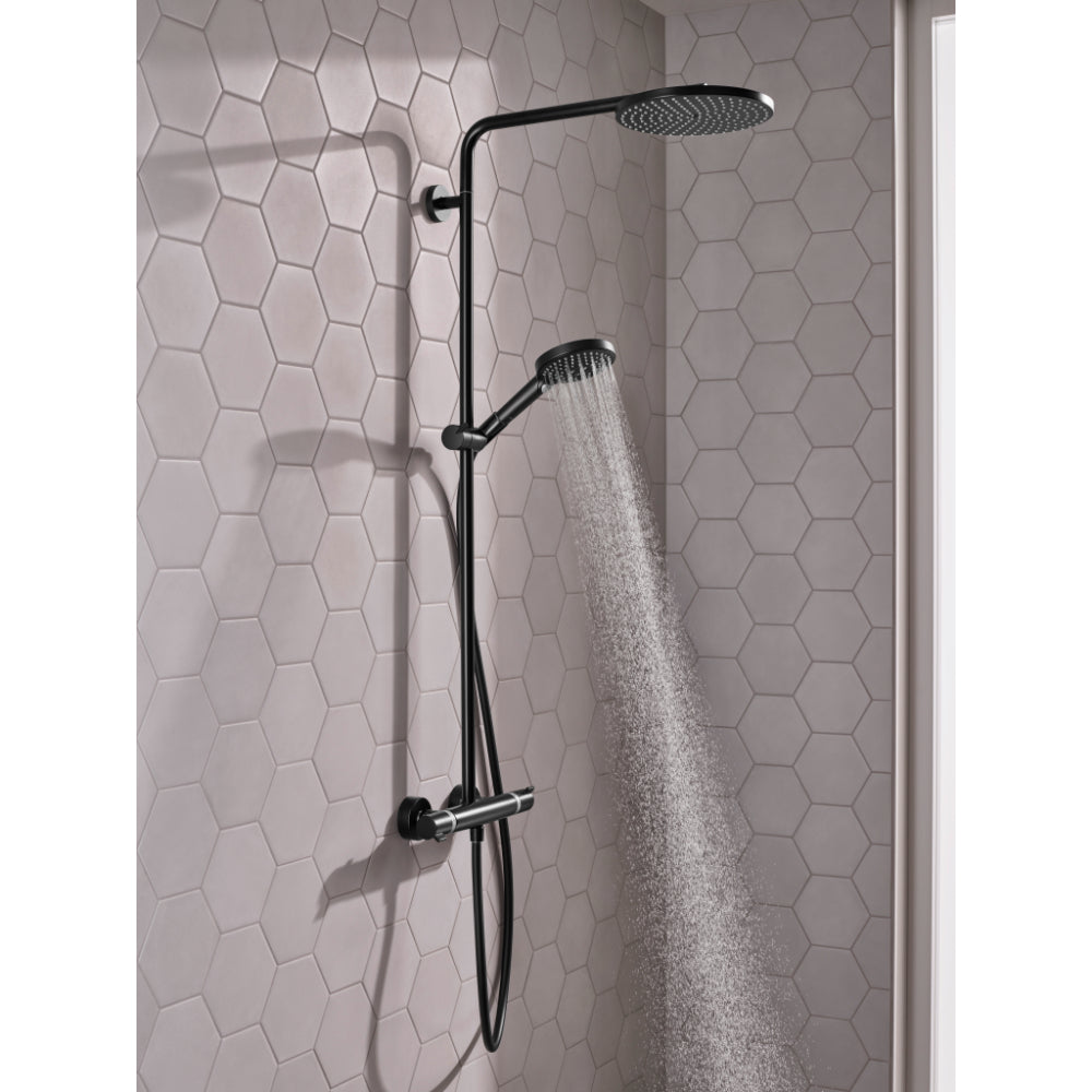 - consists of: overhead shower, hand shower, thermostatic shower mixer, shower hose, slider, shower rail