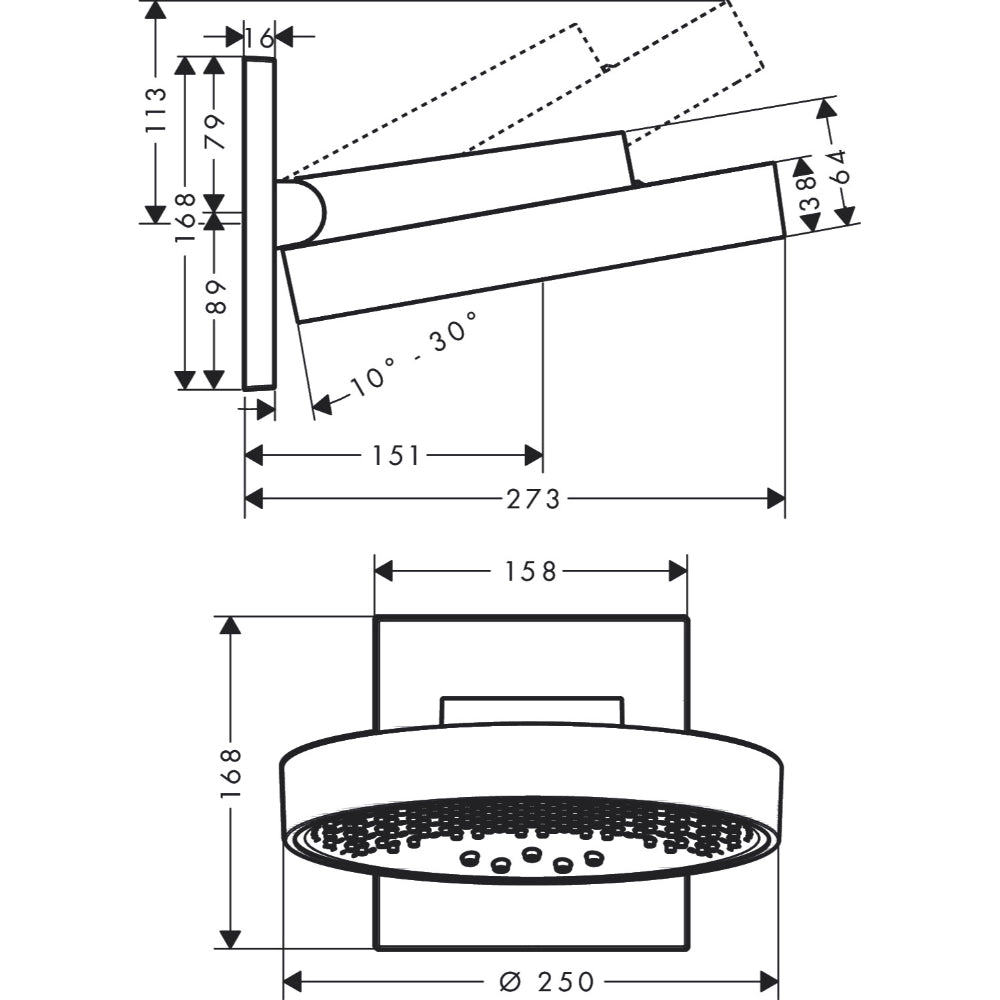 - shower head size: 250 mm