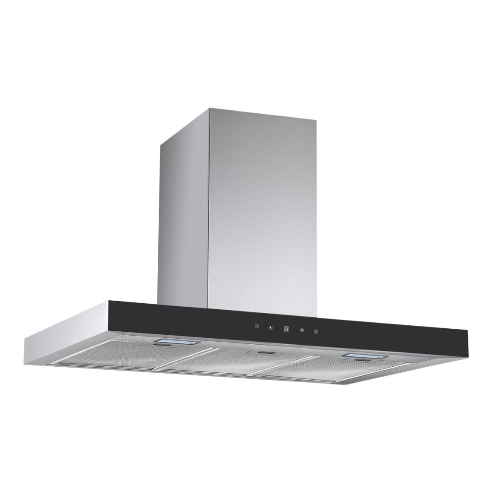 - A Wall Mounted Prima Chimney Hood in Black & Stainless Steel