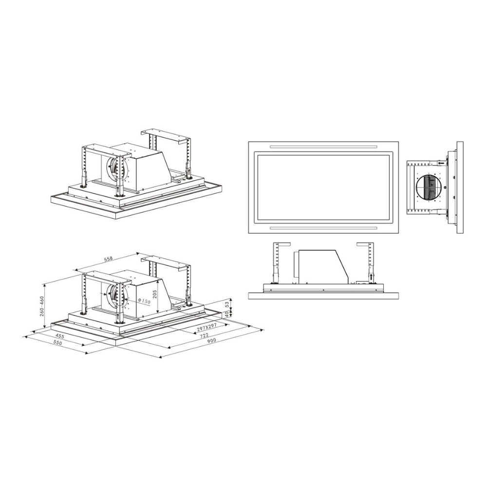 • Dimensions: H 40 (body) + 257 (motor) x W 900 x D 550mm