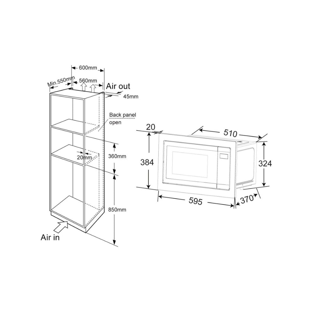 - Dimensions: H 384 x W 595 x D 370mm