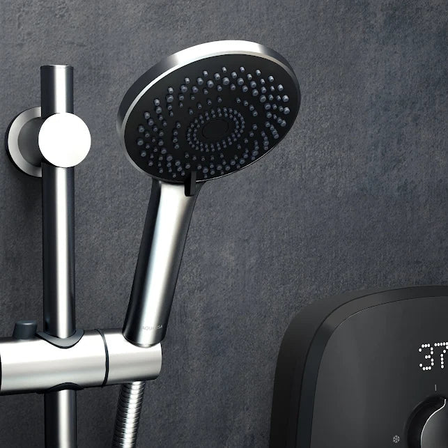 Available in three colours: Arctic White, Space Grey or Midnight Black with a Chrome shower handset and rail and 8.5kW, 9.5kW or 10.5kW options. The stylish Aqualisa eVOLVE electric shower offers powerful, environmentally-friendly showering. A-rated for energy efficiency, its easy-to-use controls let you choose how much energy and water you use, with no demand on stored hot water. Features include an over temperature protection system, modern digital display, low pressure indicator and phased shut-down technology to reduce limescale. Includes Splash handset with three spray patterns.