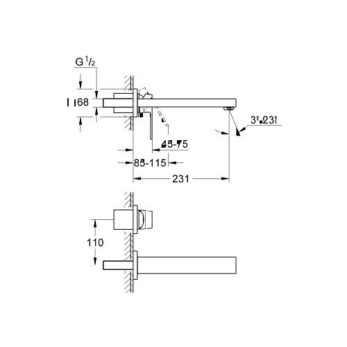Variable spout opening changes direction of water flowNo more splashes! The GROHE AquaGuide variable spout end lets you point the water flow where you want it, depending on the depth and curve of your bathroom basin. Set the spout to the angle you want and enjoy GROHE comfort every day without spills or splashes.