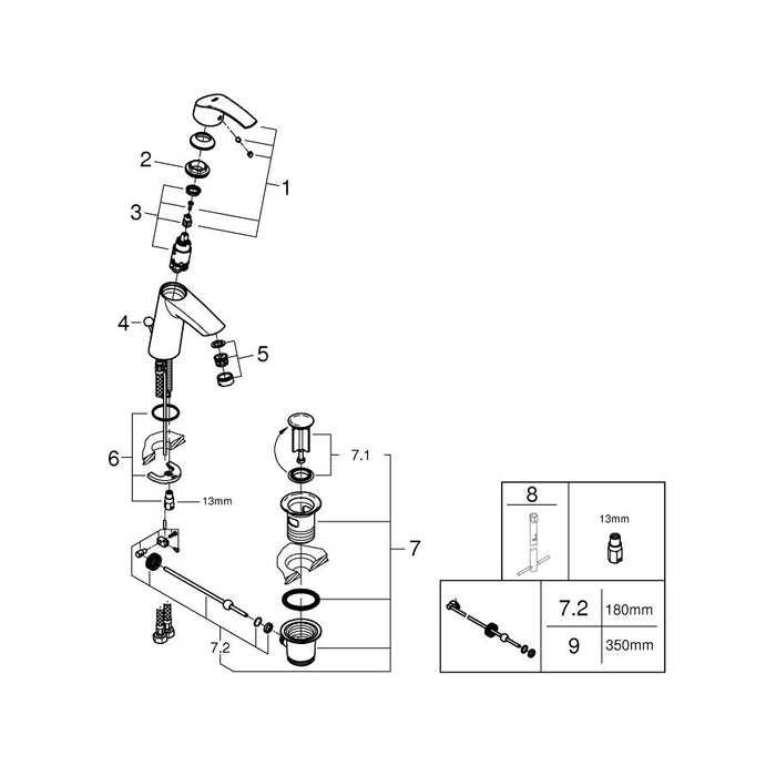 | 9 | Extended horizontal pop-up rod | 07341000* |