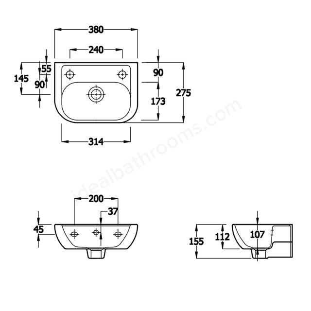 The Essential FUCHSIA Handrinse Basin Only; 380mm Wide; 1 Tap Hole; White is part of The Fuchsia range from Essential; this Handrinse Basin is a popular choice. Made from Vitreous China; this Basin is 380mm Wide and projects 275mm into The bathroom. Supplied as a Right Handed 1 Tap Hole Model; consider this basin for your bathroom today.