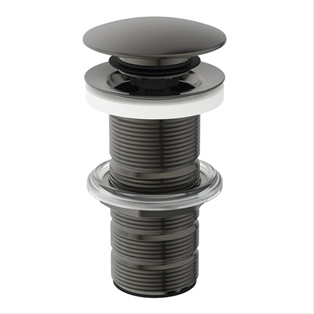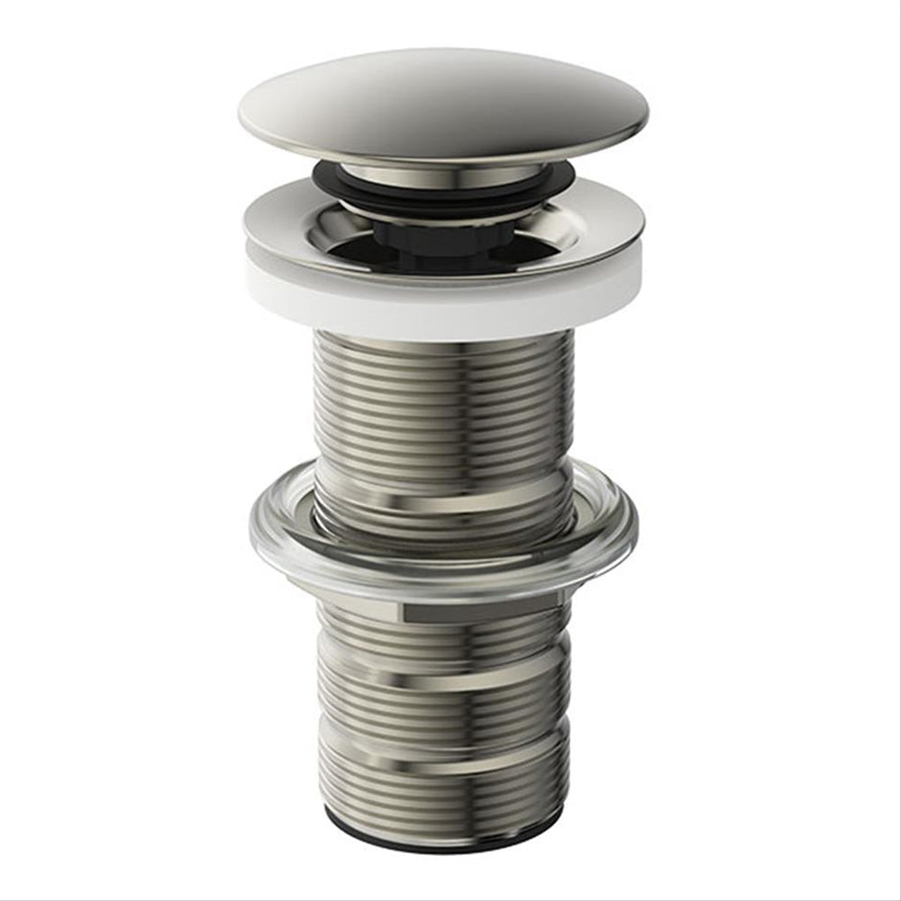 A luxury level unslotted basin clicker waste designed for use with basins without overflows.