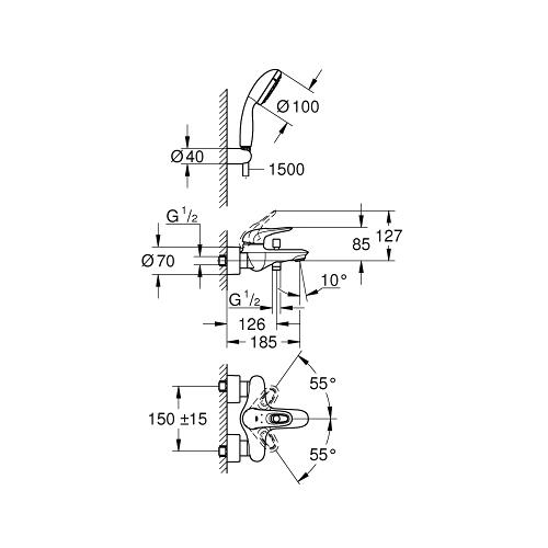 - Hand shower New Tempesta 100, 2 sprays, 9.5 l/min (26 161 000)