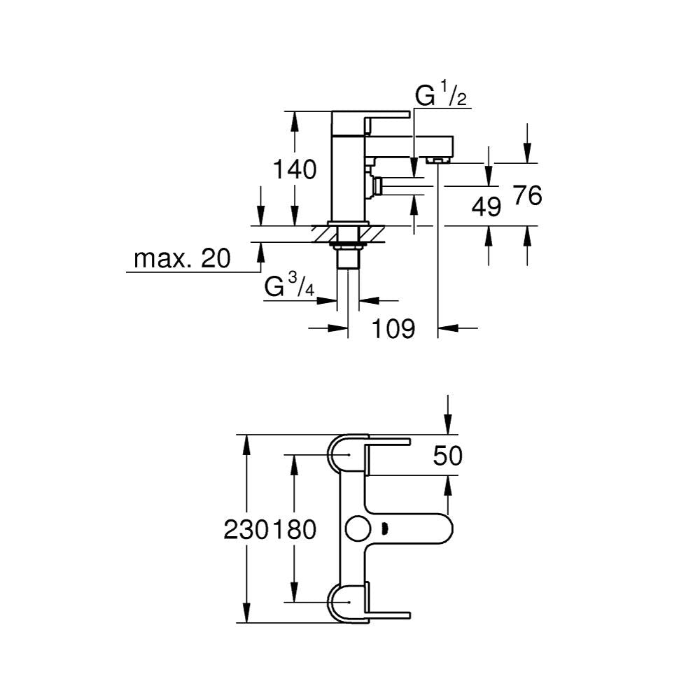 Give your bathroom and injection of cool, clean modern style with the 2-handle Grohe Plus bath/shower mixer. This shower/bath filler is designed to be rim-mounted on the edge of the bath tub for a streamlined look, and is operated via the two tactile solid metal lever handles. The automatic diverter switches effortless between the bath filler and shower function. Finished in the long-lasting Grohe Star Light chrome this tap combines durability with dazzling good looks. The Grohe Plus collection is perfect for combining with Grohe Essence and Cube ceramics and Smart Control and Rain shower Smart Active products for a consistent bathroom design.