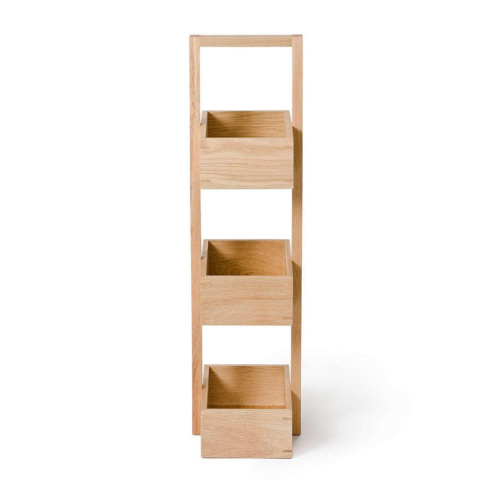 Made from sustainably harvested natural American white oak and oak veneers, selected for their warm colour, beautiful grain pattern and traditional hardwood durability. All edges look crisp but are carefully hand sanded to make them soft to the touch. Finished with a matt, water resistant lacquer. Silicone feet stop it slipping.