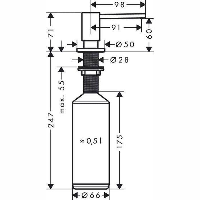 - Filling capacity 500 ml