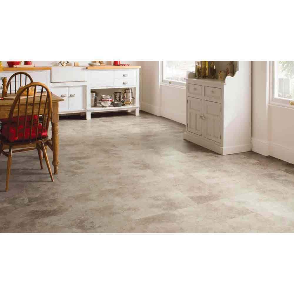 This travertine stone effect design features subtle grey tones,with hints of moss green and cream in a mottled pattern, adding alevel of complexity and interest.
