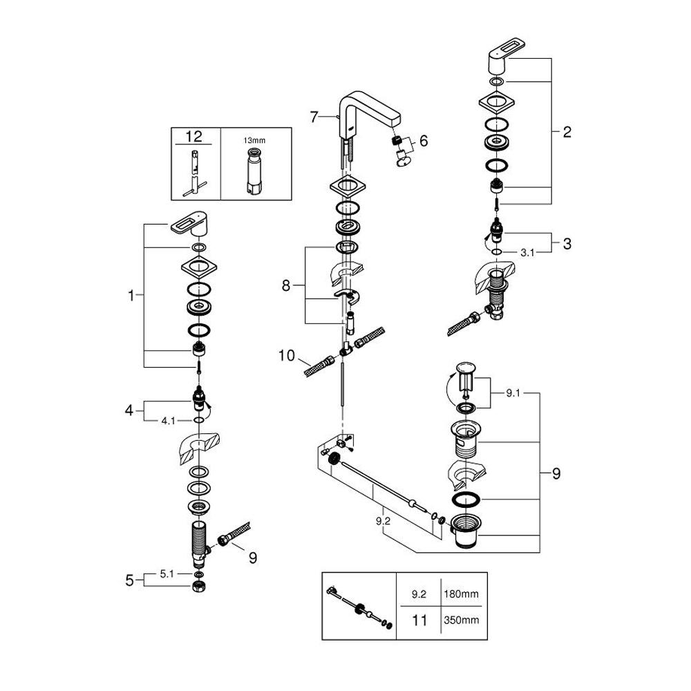 | 11 | Extended horizontal pop-up rod | 07341000* |