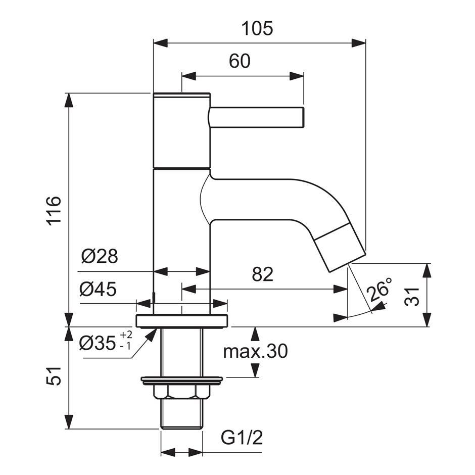 Suitable for balanced/unbalanced supplies. Inlets 1/2in BSP male coned for copper. Pillar taps come supplied with brass back nuts. Consideration should be given to safe hot water delivery and the use of an appropriate temperature reduction device.