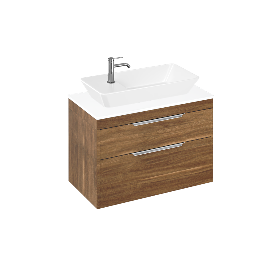 Britton Shoreditch 820mm Vanity Unit - Wall Hung 2 Drawer Unit with White Worktop & Yacht Countertop Basin