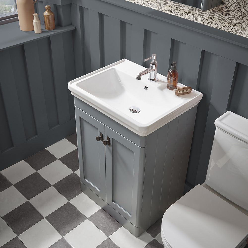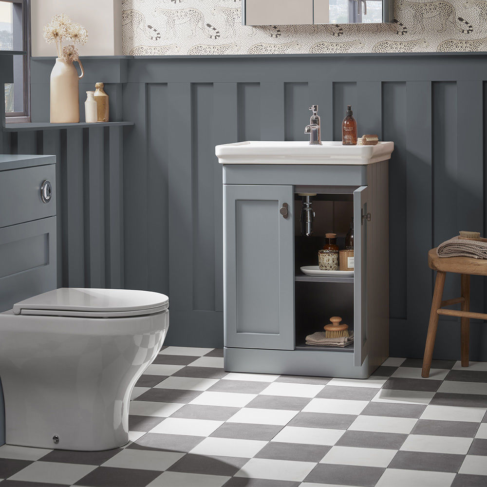 Tavistock Marston 600mm Floor Standing 2 Door Vanity Unit & Basin - Matt Spruce