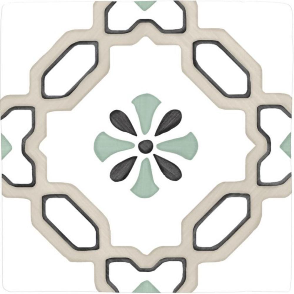 Introducing our Tanger Sand Lily tile, featuring a charming floral pattern in muted blue and sandy cream hues. Ideal for both interior and exterior walls and floors, this porcelain tile boasts a matt finish and comes in a compact 123x123mm size with 8.7mm thickness.