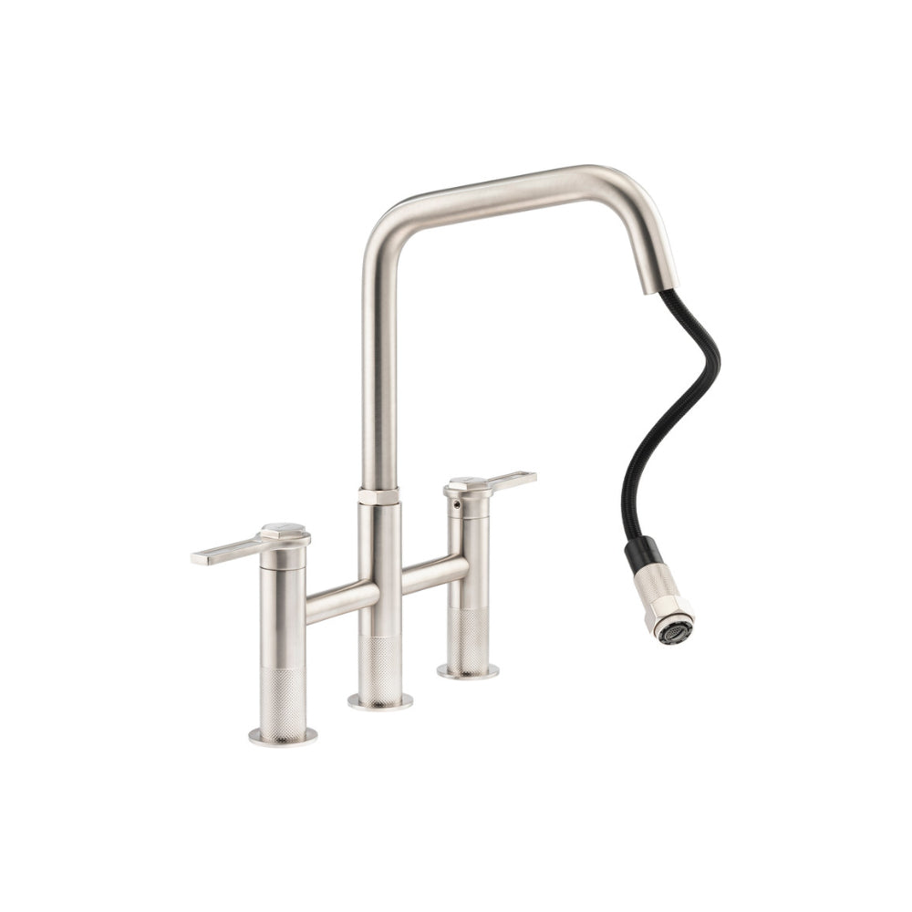 - A classic Abode Hex tap in brushed nickel with a brushed finish