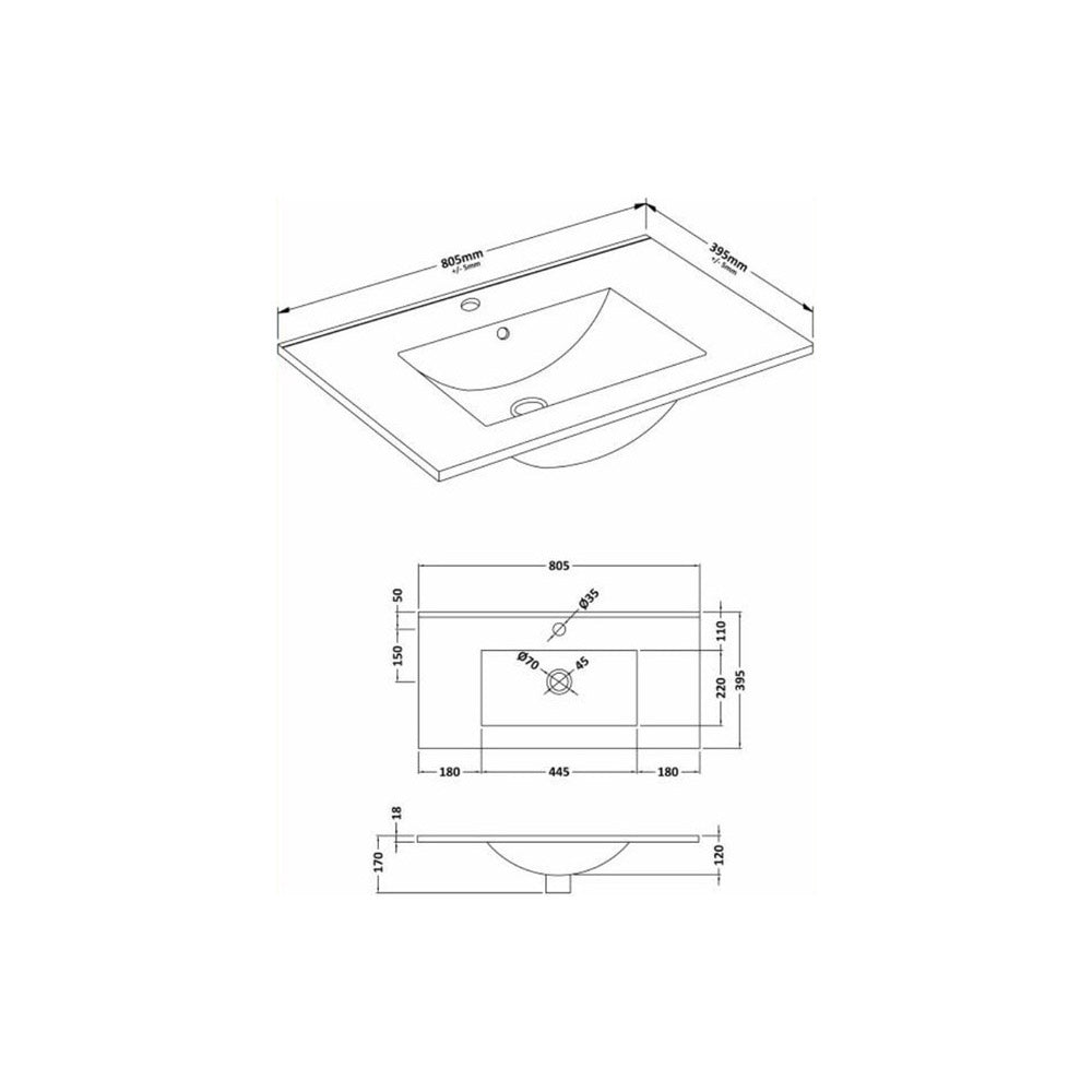 • BLIS104060: Turano 810mm Basin Unit (exc. Basin) - Grey Ash