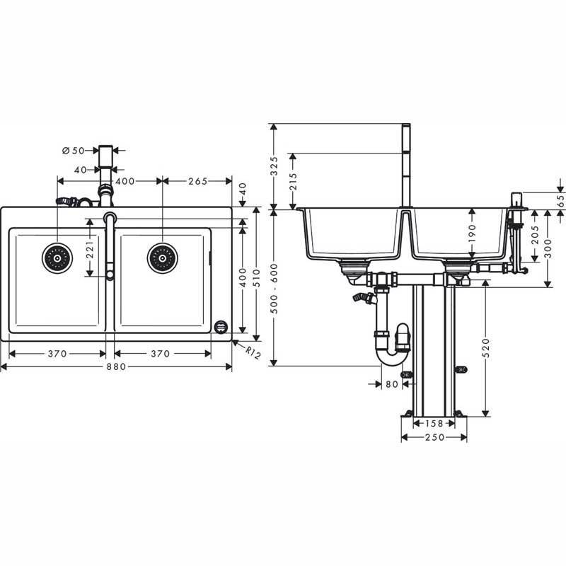 - Consists of: built-in sink, 2-hole single lever kitchen mixer, control unit, hose box, manual waste and overflow set