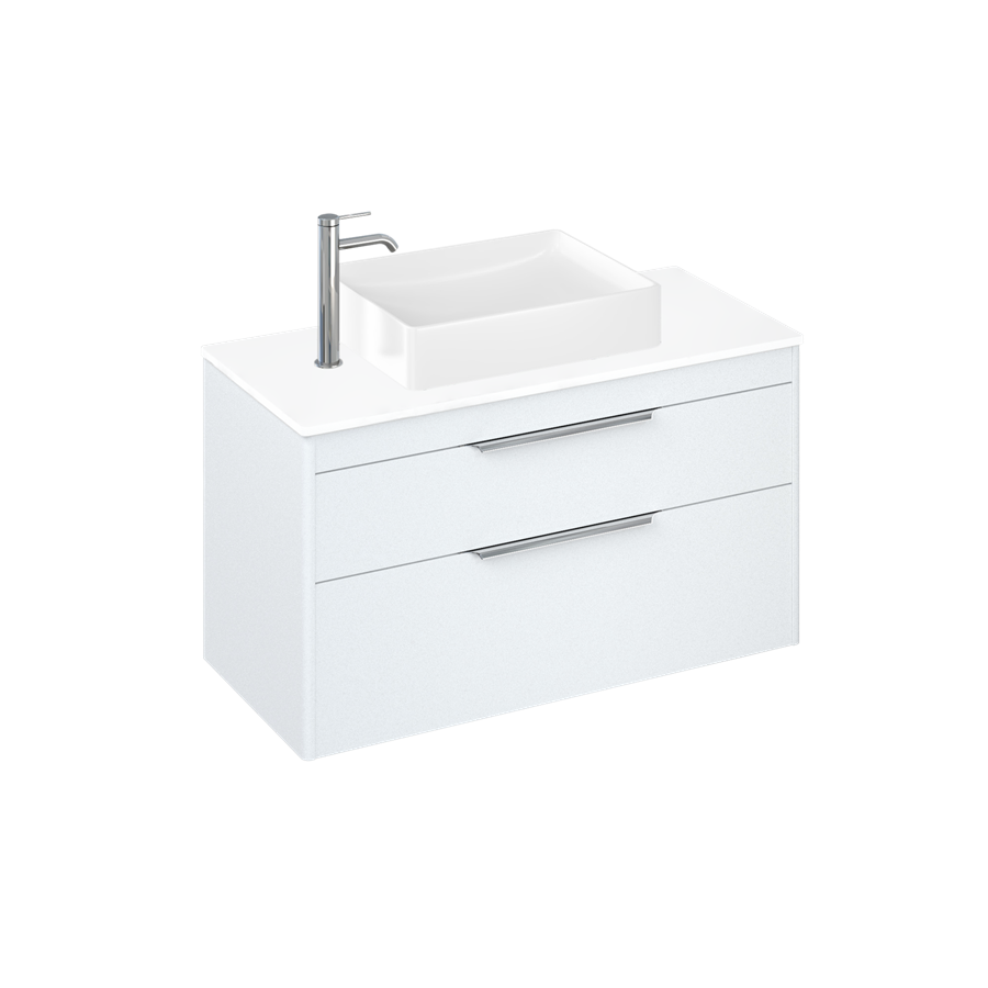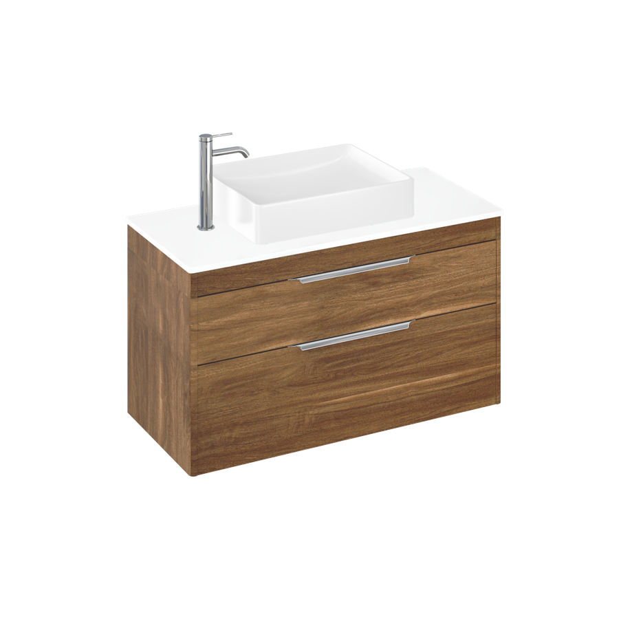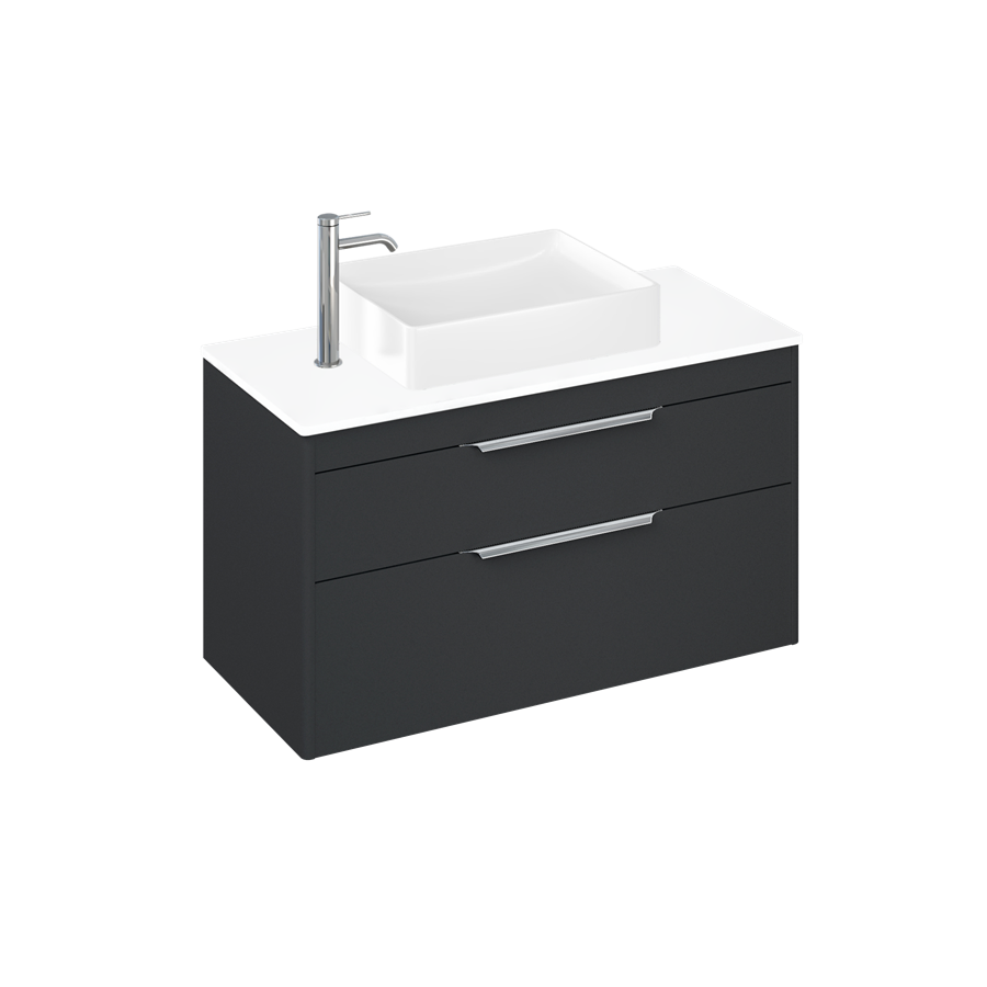 Britton Shoreditch 1000mm Vanity Unit - Wall Hung 2 Drawer Unit with White Worktop & Quad Countertop Basin