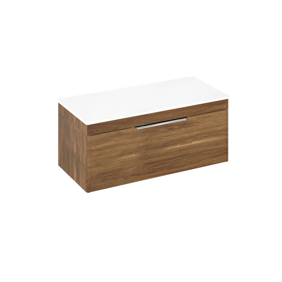 Britton Shoreditch 1000mm Vanity Unit - Wall Hung 1 Drawer Unit with White Worktop (No Basin)