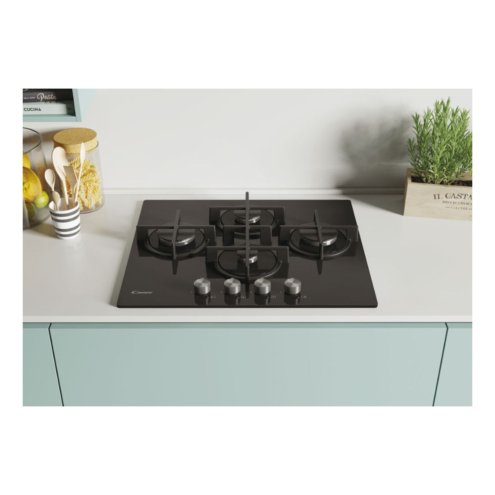 - A Built In Candy Gas on Glass Hob in Black Glass