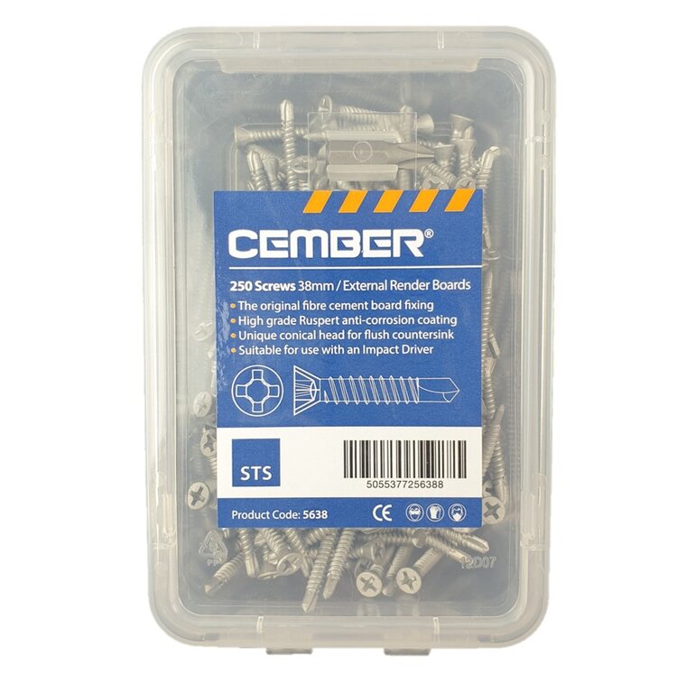 The STS External Render board screw is a high-performance screw designed specifically for use with our 12mm STS Construction Board. When installing our Render boards it is important to ensure the screws used are flush, strong and suitable for high levels of moisture and weathering. The Ruspert® coating on the screws is a perfect barrier for all corrosion, rust and weathering. These screws are 38mm long and come in a handy plastic box of 250 screws.