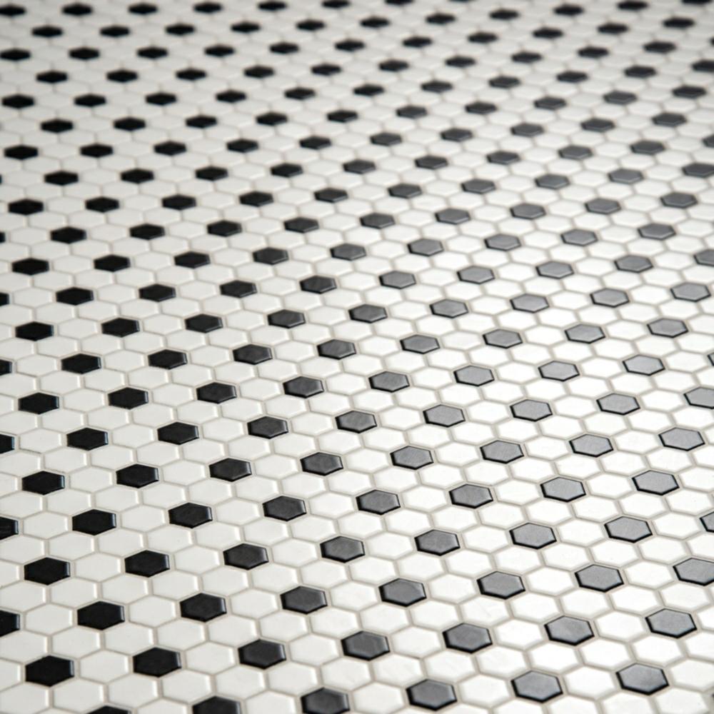 These Pixel Black Hexagon gloss 23X23 Tiles have a stylish design in a gloss finish. They're made from porcelain and measure 260x300x6mm.