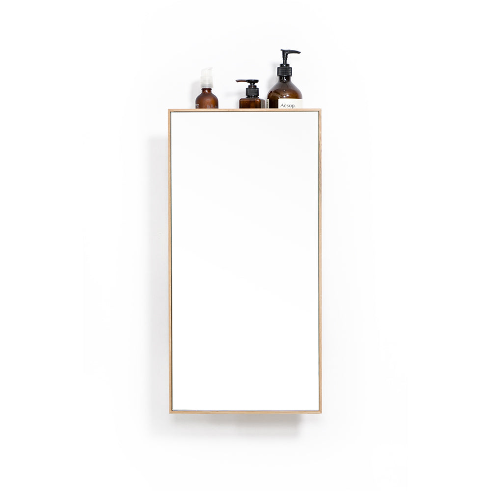 The Slimline 3 Tray Mirror is made from sustainably harvested natural American white oak and oak veneers, selected for their warm colour, beautiful grain pattern and traditional hardwood durability. All edges look crisp but are carefully hand sanded to make them soft to the touch. Finished with a matt, water resistant lacquer.