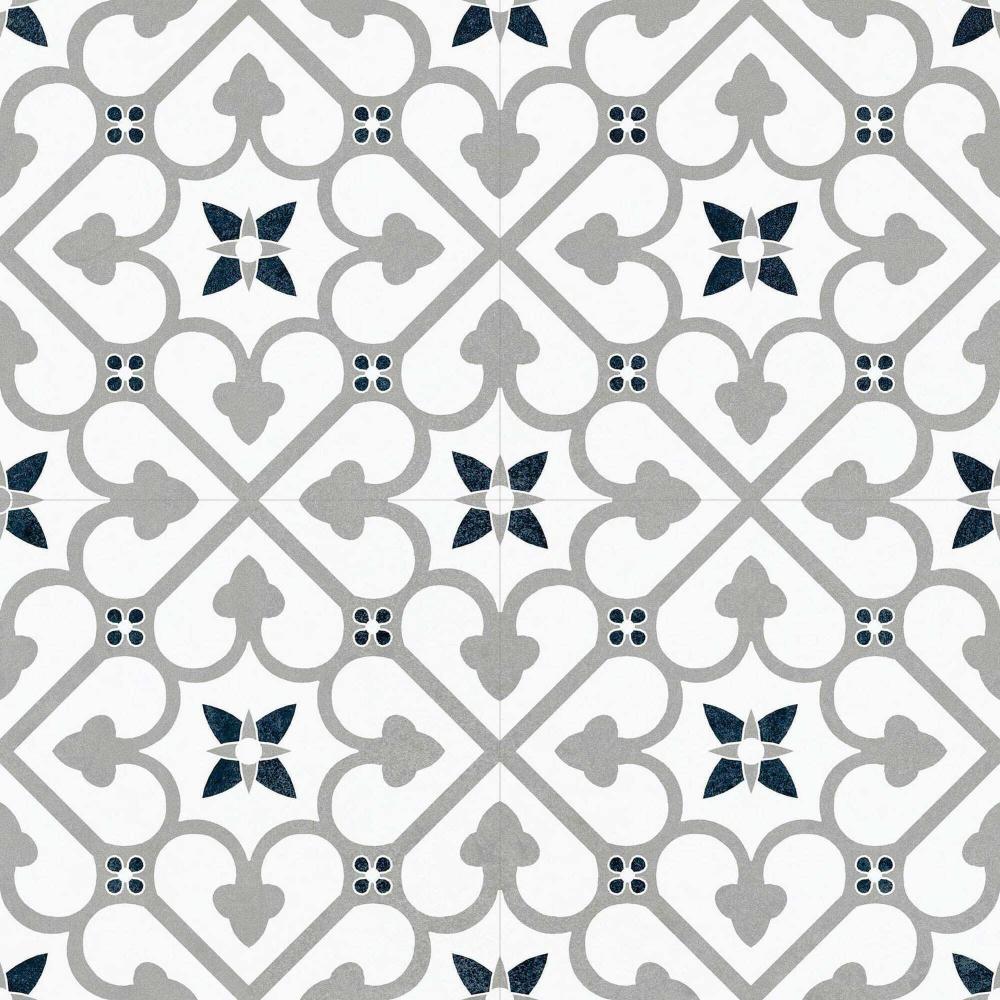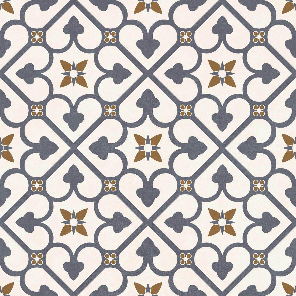 The Bello Brighton tile features an eye-catching floral pattern in a classic colour palette of deep blue and terracotta, perfect for creating a traditional encaustic design on both walls and floors. This porcelain tile offers durability with a matt finish, measures 450x450mm with a 9.5mm thickness, and boasts an R10 slip resistance rating for added safety.