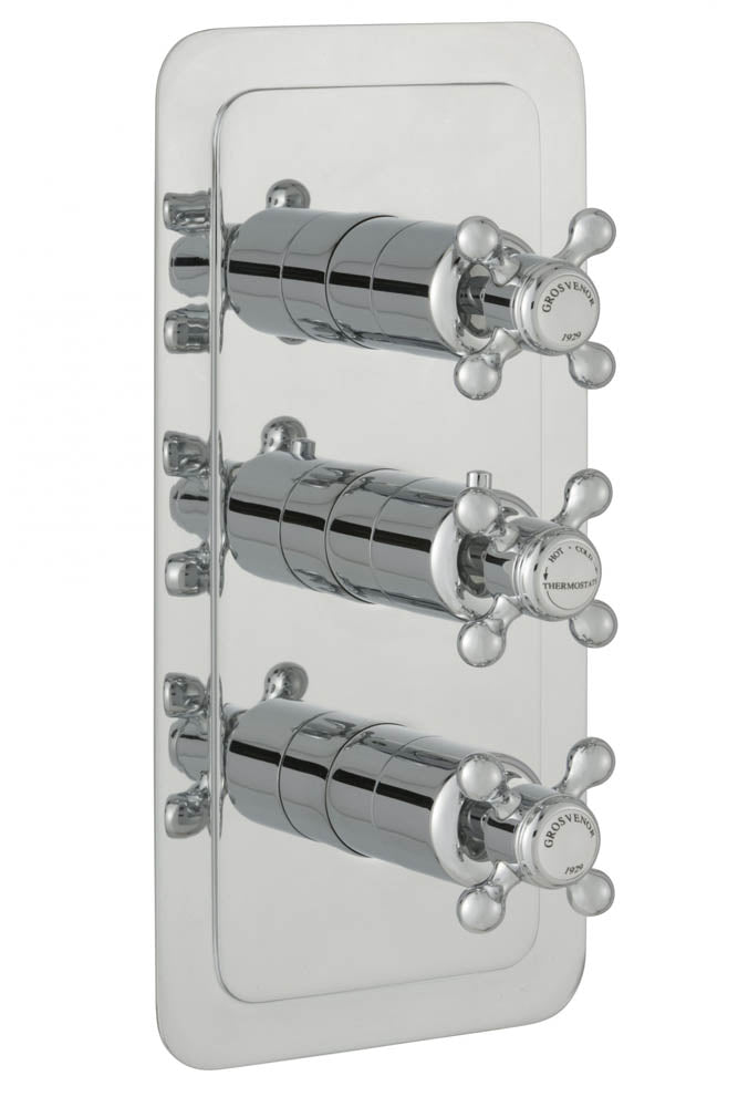 JTP Grosvenor Cross Thermostatic Concealed 3 Outlet Shower Valve-Vertical Nickel
