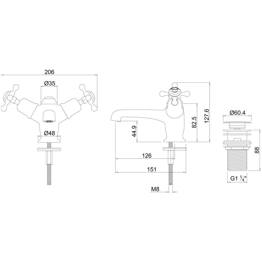 | Colour | T12: Tap - Chrome plated T12-QT: Tap - Chrome plated T13: Tap - Chrome plated T13-QT: Tap - Chrome plated T2: Tap handles - Chrome plated T4: Tap handles - Chrome plated W11: Waste - Chrome plated T4B: Regent tap base - Chrome plated |