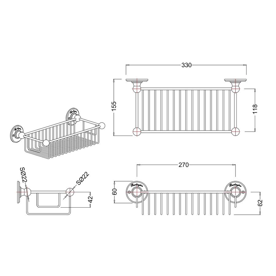 A23 CHR- A23 CHR: Wire basket 62mm deep (155 x 330mm)