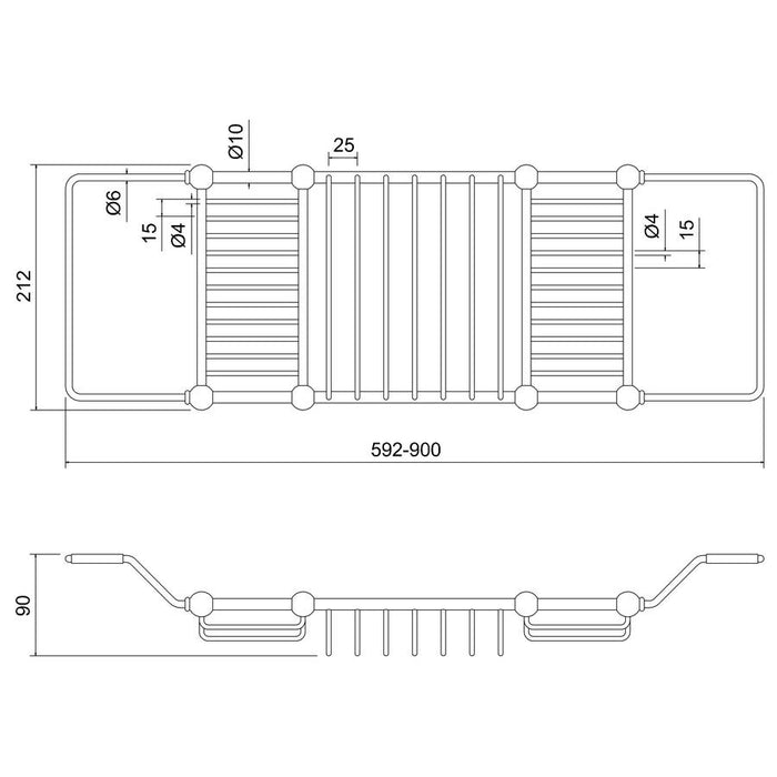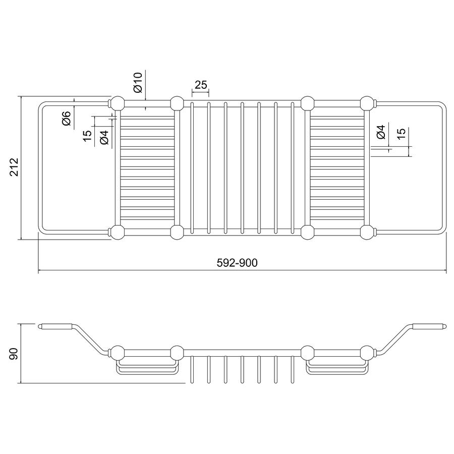 the bath rack is extendable from 592 to 900mm