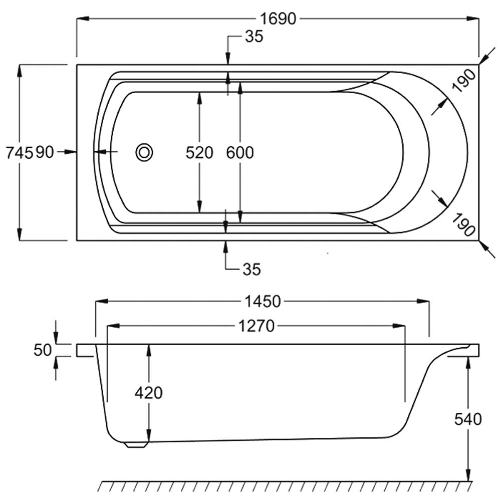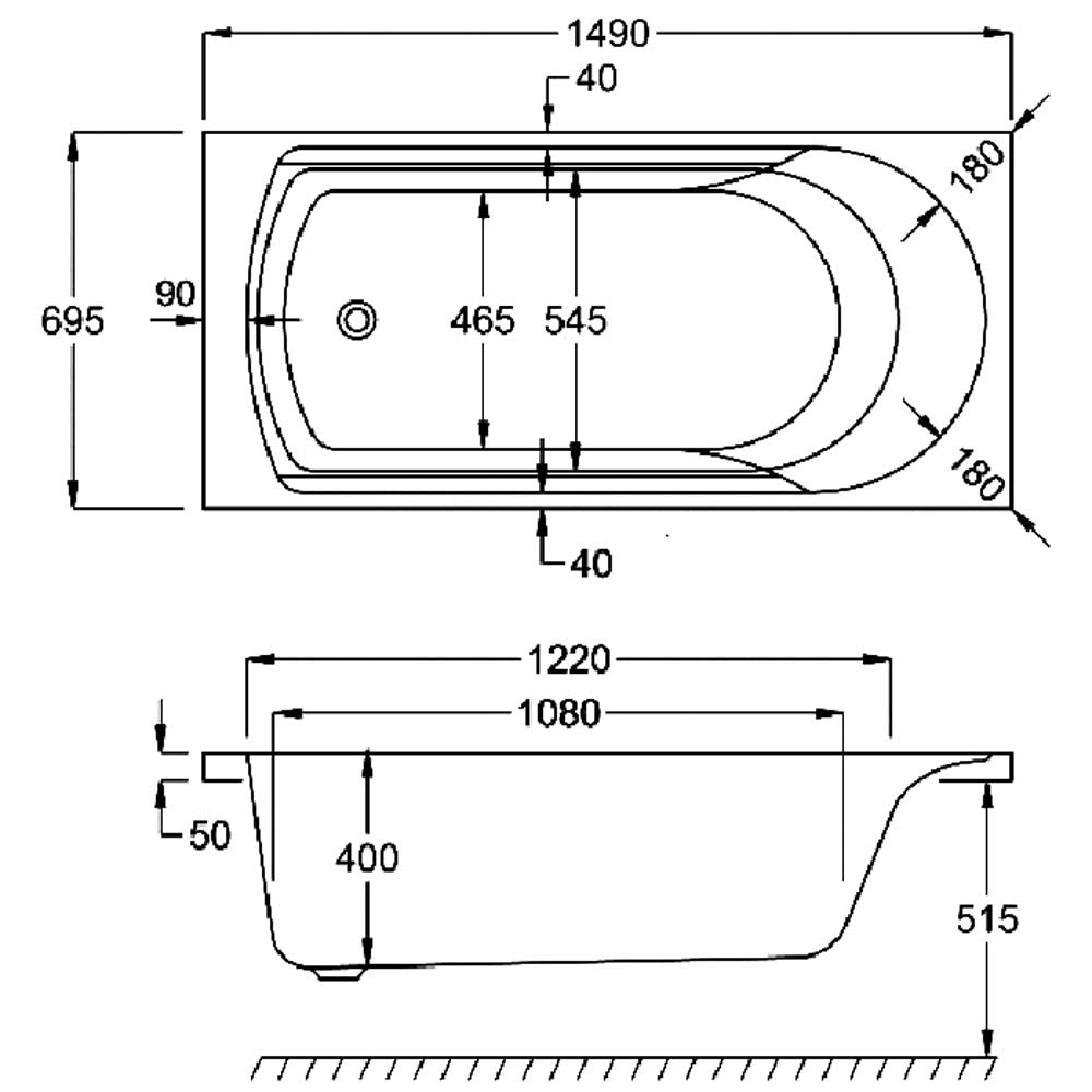 Carron Arc Single Ended 5mm Acrylic Shower Bath White