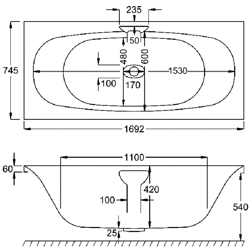 • 02080: Echelon 1700x750mm Carronite Bath - White