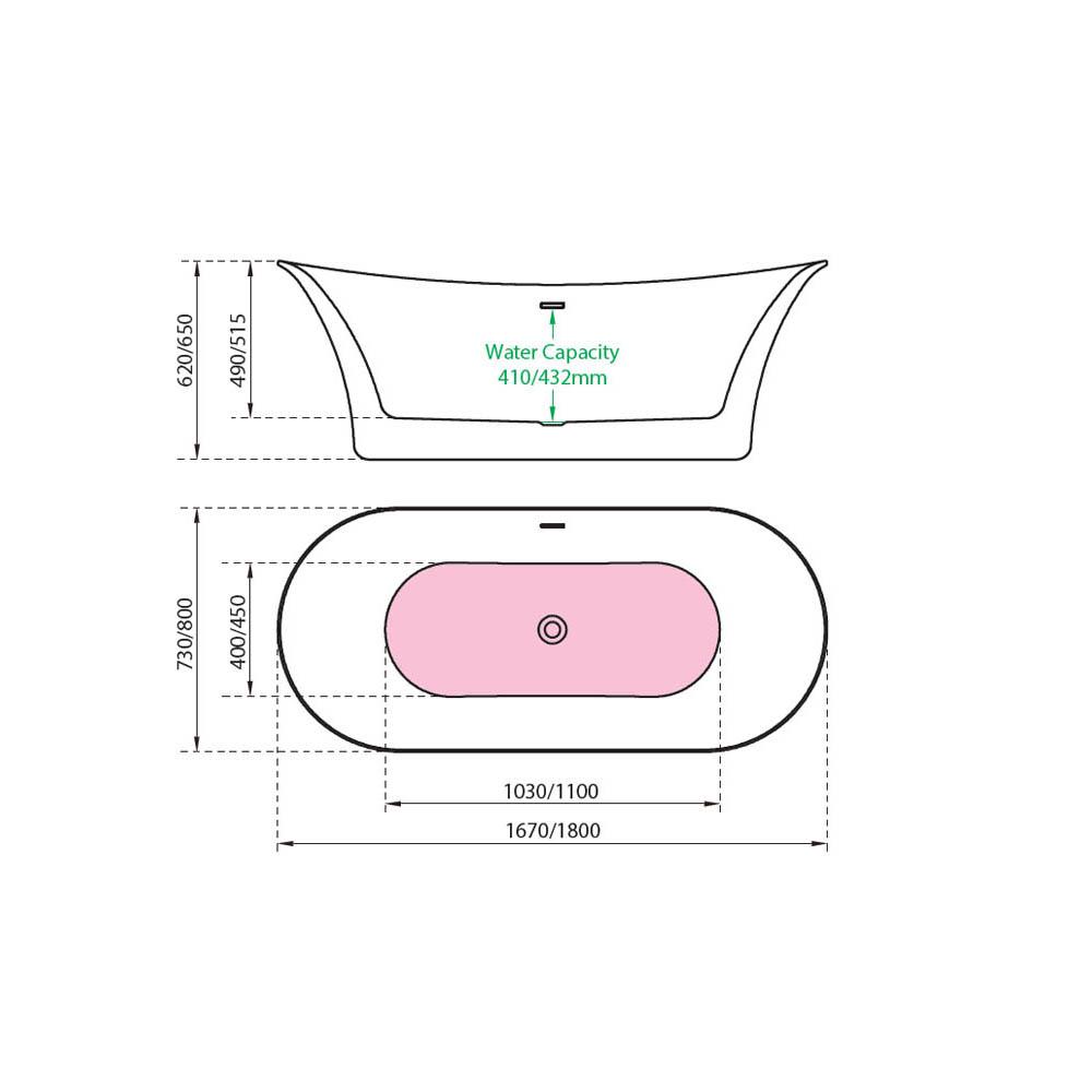 - Elegant, contemporary slim edged freestanding bath