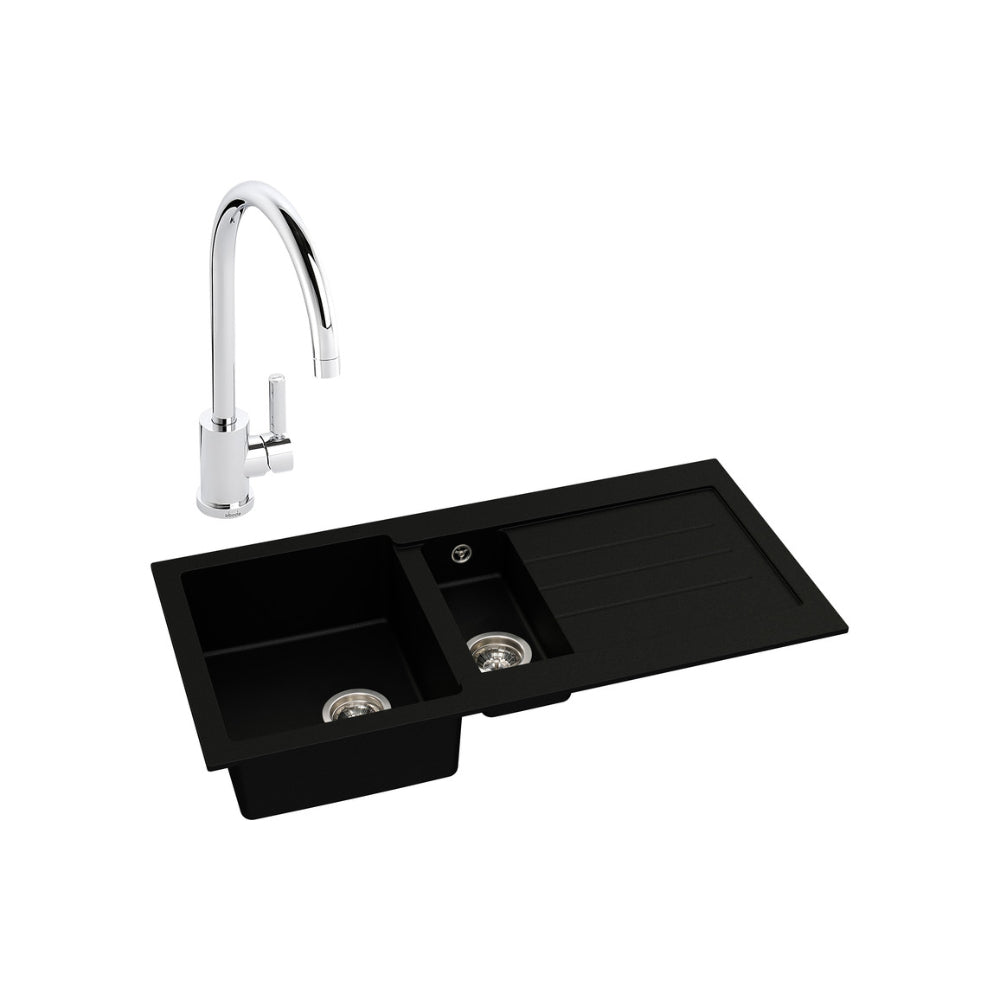 - An Abode Xcite 1.5 bowl inset sink in Black Metallic