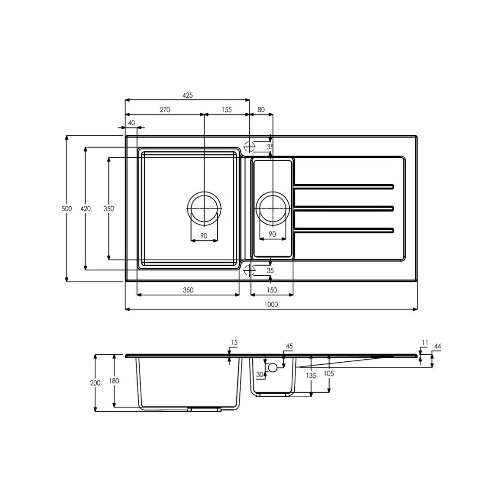 - Second Bowl Dimensions: W 150 x D 350 x H 105mm