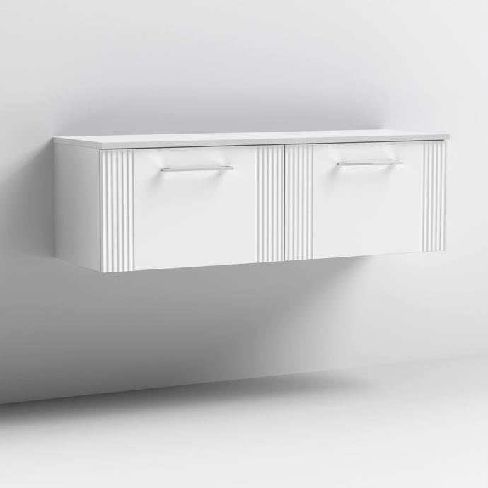 Nuie Deco 1200mm Wall Hung 2 Drawer Fluted Double Vanity Unit & Worktop - Satin White