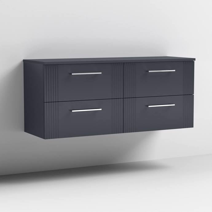 Nuie Deco 1200mm Wall Hung 4 Drawer Fluted Double Vanity Unit & Worktop - Satin Anthracite