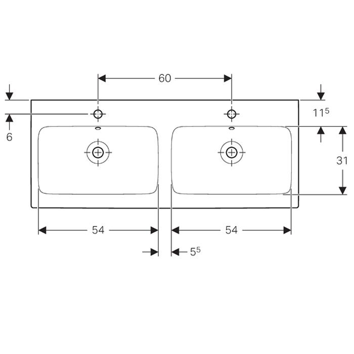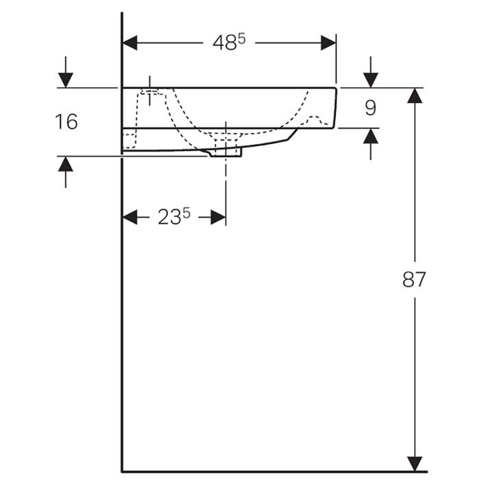 | Art. no. | Colour | B [cm] | H [cm] | T [cm] | Tap hole | Overflow |