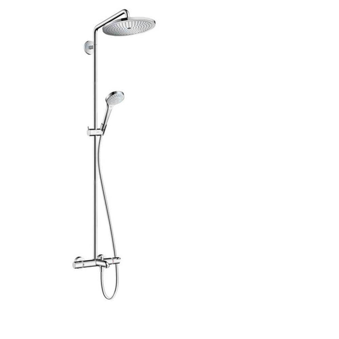 - Consists of: overhead shower, hand shower, thermostatic bath mixer, shower hose, slider