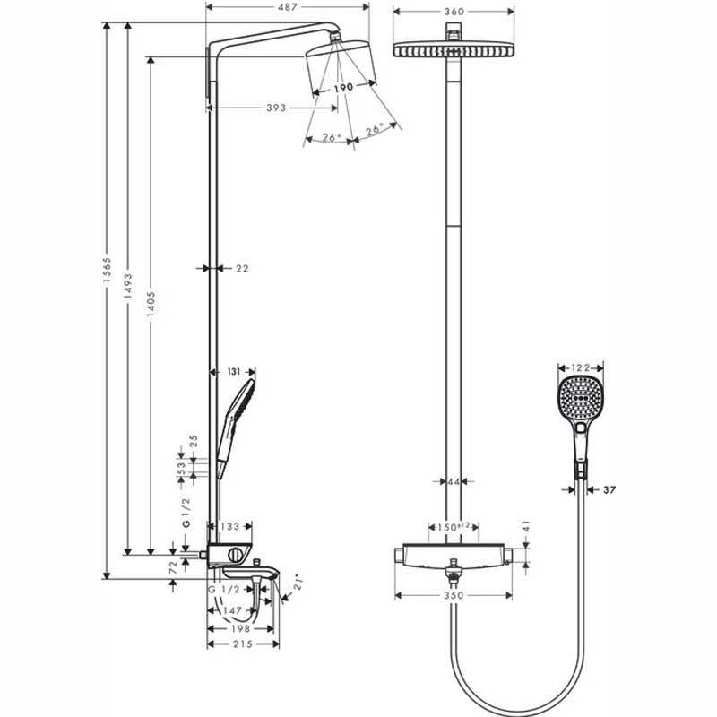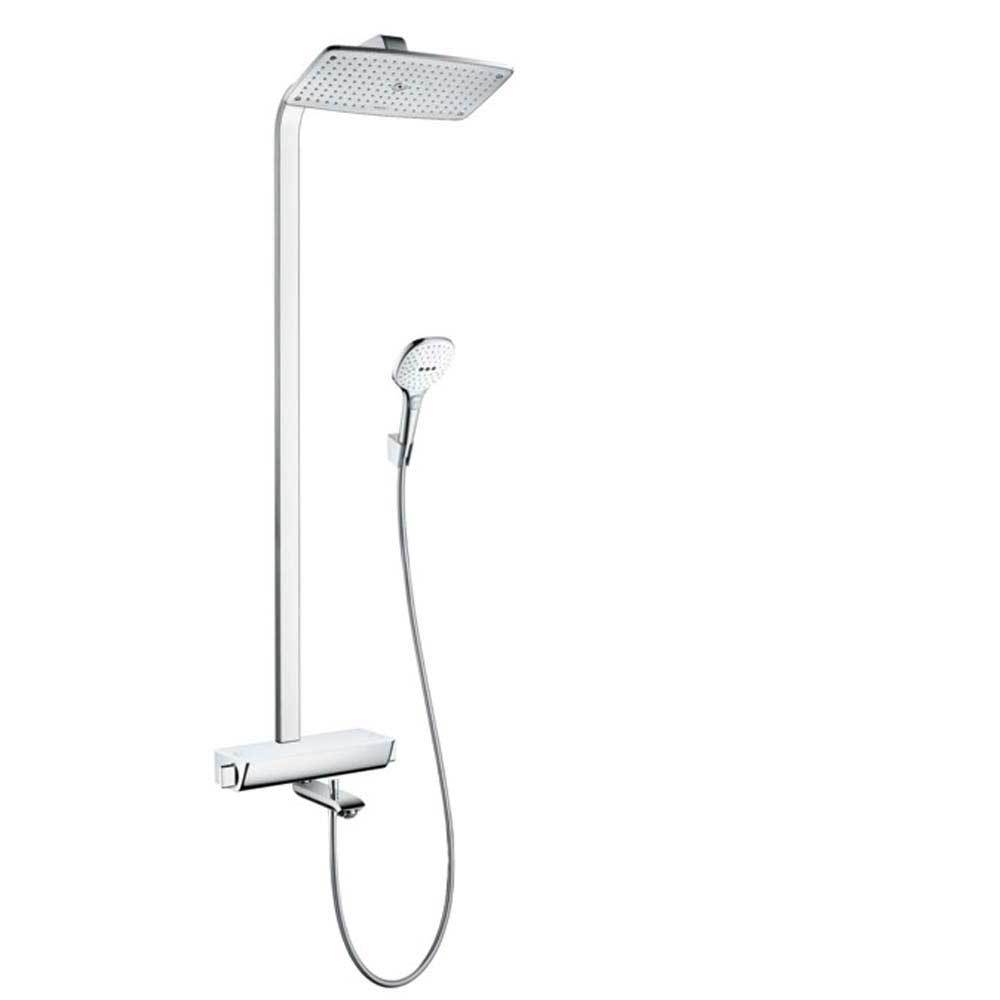 - Consists of: overhead shower, hand shower, thermostatic bath mixer, shower hose, shower holder
