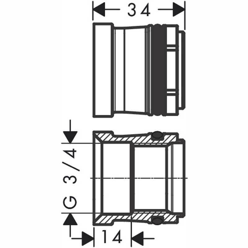 - Adapter for installation on existing s-unions G 1/2 x G 3/4