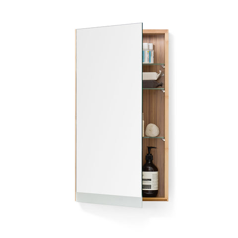 The Arena Single Bathroom Mirror Cabinet's door fits seamlessly flush to the edge of a smooth bamboo cabinet. The frosted mirror edge feature gives a rich lustre look and will not not pick up finger prints. Inside are three polished glass shelves that can be moved to suite your exact storage requirements. Whether it's taller bottles or slim jars, there is more than enough space.