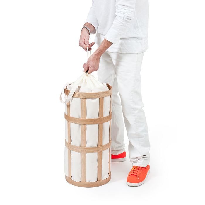 Laundry Basket Cage and Fabric Insert - Natural Oak
